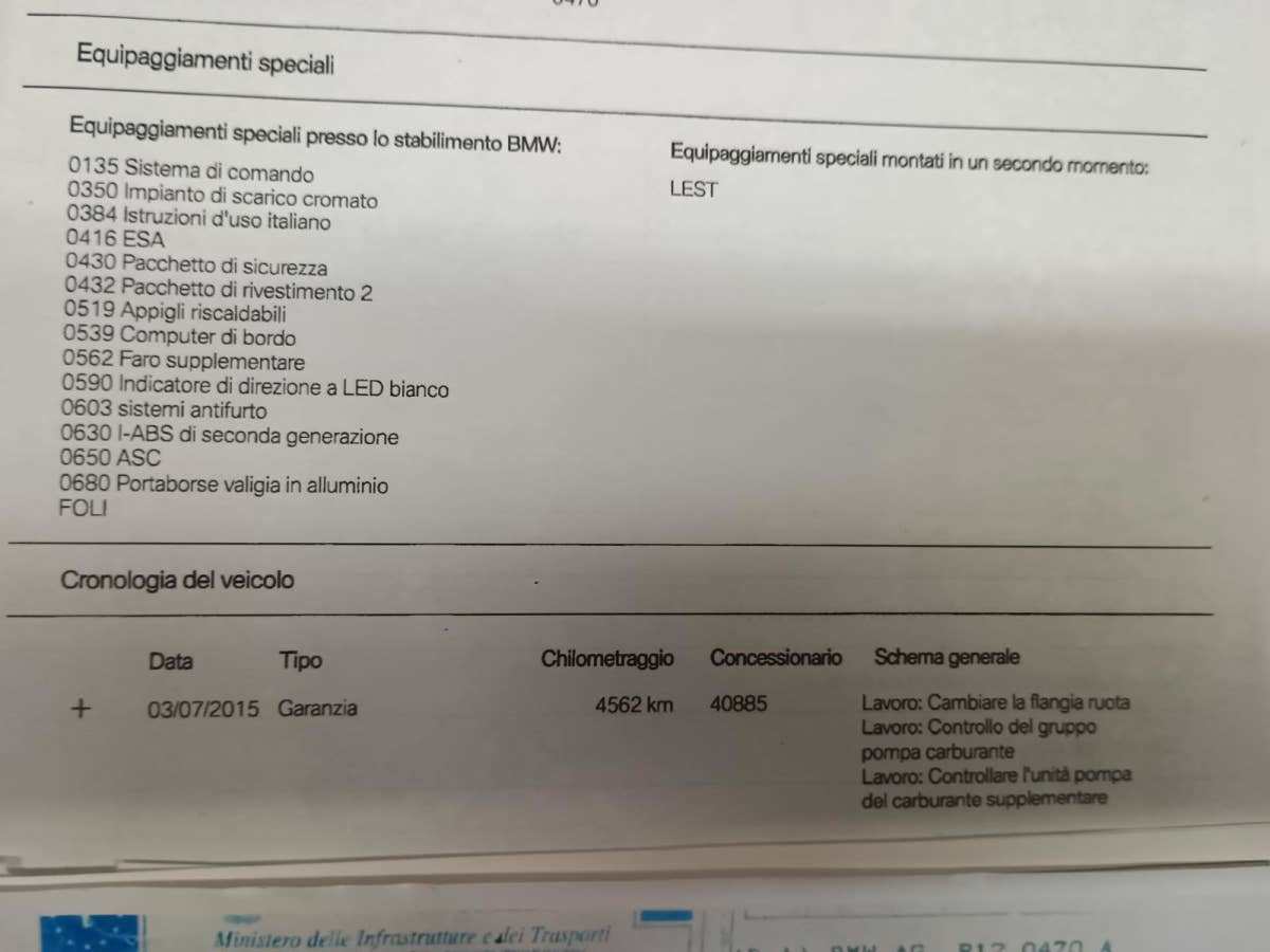 Moto máme přímo ze salonu BMW kam byla dána protiúčtem. K moto je vše doloženo-všechny svolávací akce, typový list, výpis STK a proběh kilometrů.